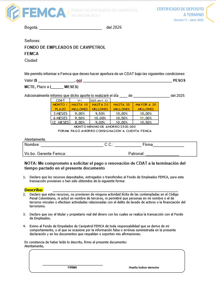 Descarga formato para apertura